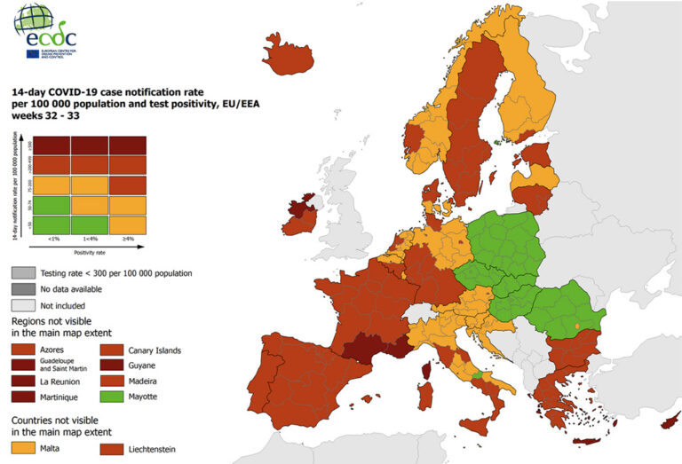 COVID-19 Euroopas 33. nädal 2021
