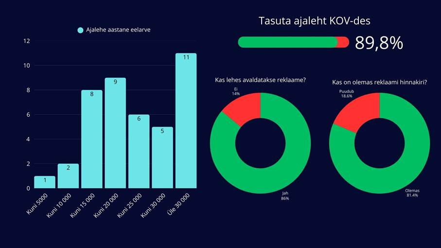 Küsitluse järgi avaldab reklaami 86% KOVi lehtedest ja reklaami hinnakiri on olemas 81,4% juhtudest. Ent reklaami ja (sisu)turunduse märgistuse osas on pilt ebaühtlane. Osa lehti peab märgistust selgeks ja järjepidevaks, osa ei kasuta seda üldse ning osa kirjeldab seda ebaselgena.