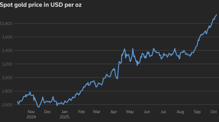 Avaldatud: 6 oktoober, 2025Kulla hind jõudis esimest korda ajaloos 3970 dollarini untsi kohta