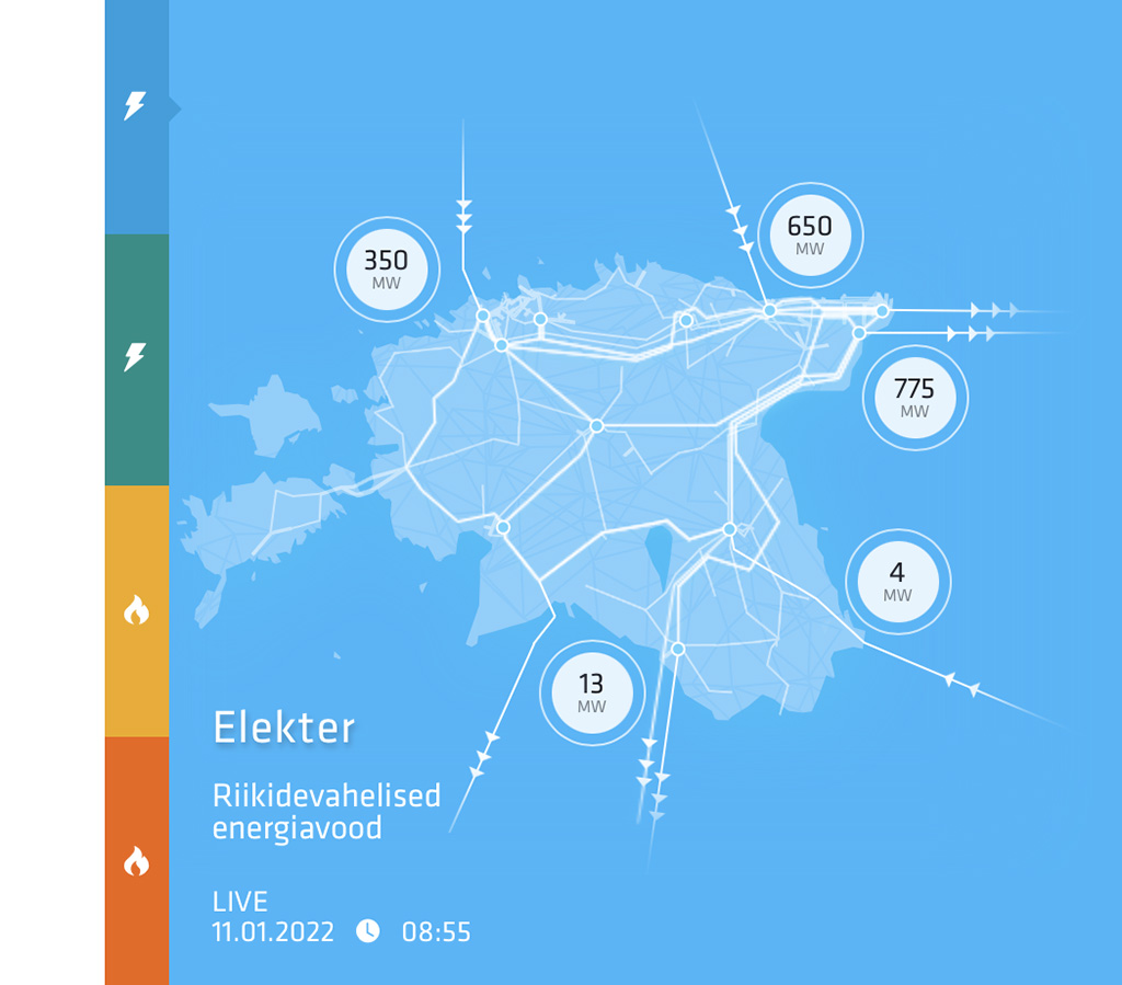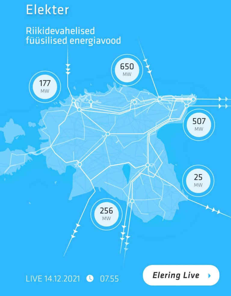 Kui sinine kaart näitab, et elekter liigub Eestist Venemaale, siis see tähenda üldjuhul seda, et Soomest sisse tulev elekter põikab füüsilises mõttes Venemaa võrku ja liigub sealt edasi Läti ja/või Leedu võrkudesse. Oleme praegu Venemaaga samas sagedusalas ja füüsilises mõttes võib elekter liikuda sagedusala raames vabalt. Ehk elektri transiit läbi Vene võrgu on täiesti normaalne ja igapäevane.