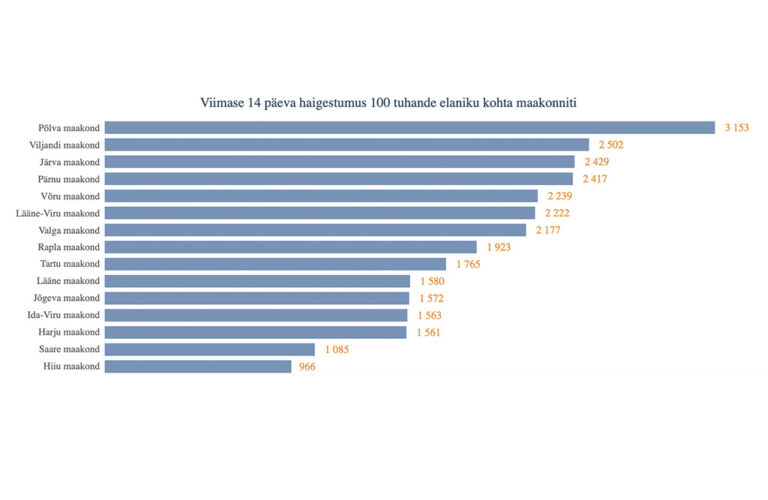 Põlvamaal on vaktsineeritus 4. novembri seisuga 66,7 protsenti, Võrumaal 62,2 protsenti ja Valgamaal 61,7 protsenti. Samal ajal on Põlvamaa nakatumise tase 14 päeva jooksul 100 000 elaniku kohta 3153, Võrumaal on vastav tase 2239 ja Valgamaal 2177.