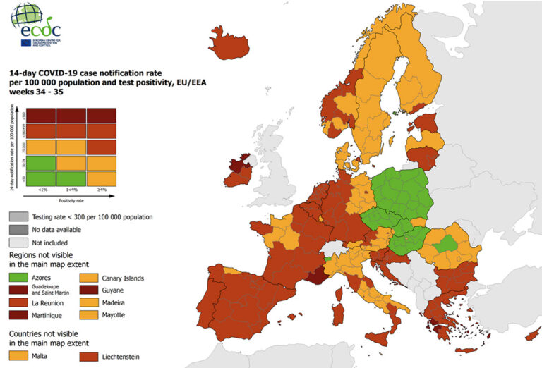 Avaldatud: 9 september, 2021Eesti on kerkinud koroonaga nakatumiste arvult Euroopas kolmandaks, selgub Euroopa haiguste kontrollikeskuse ECDC värskest nädala ülevaatest.