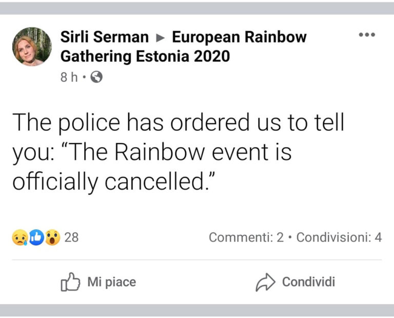 Avaldatud: 20 juuli, 2020Antsla lähedal korraldatava hipikogunemise üks korraldajaid andis sotsiaalmeedia vahendusel teada, et politsei on palunud tal edastada info, et üritus jääb ära.