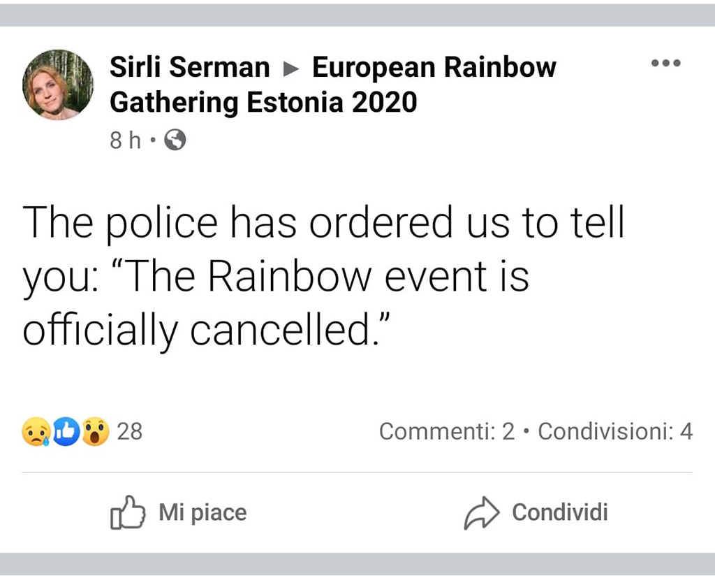 Rainbow kogukonnas liigub erisugust infot: ühed väidavad, et üritus jääb ära ja pole mõtet tulla, teised väidavad, et seda pole mõtet kuulata ja et üritus toimub igal juhul. Viidatakse sellele, et tegemist pole nö ametliku üritusega ja igaüks võib tulla Eestis kellegi poole külla ja seal olla.