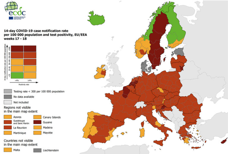 COVID-19 Euroopas 18. nädal 2021