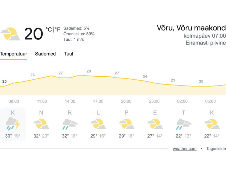 Öine õhutemperatuur langeb praeguselt 20 kraadilt 13 kraadi peale.