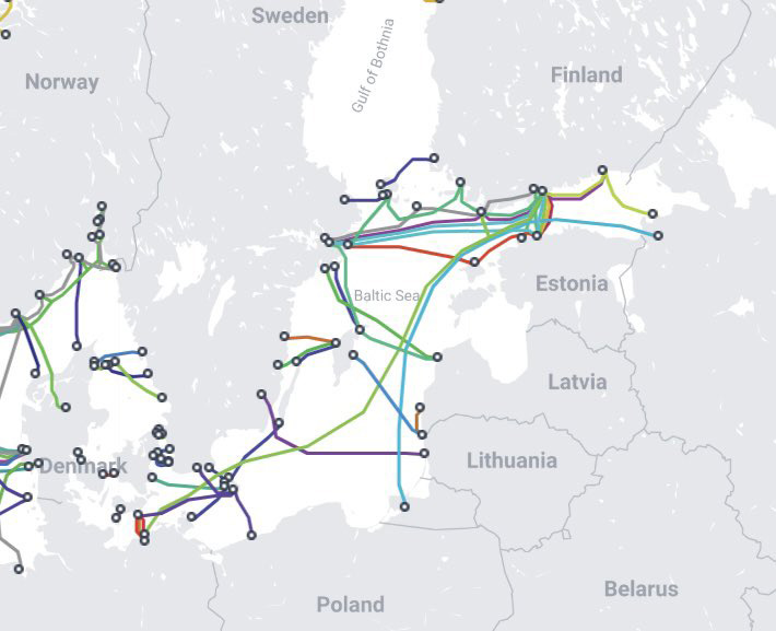 Liepaja asub Läänemere keskosas. Õnnetuspaik ei ole Soome lahe lähedal, kus eelmised Läänemere kaabli purunemised toimusid uusaastaööl.