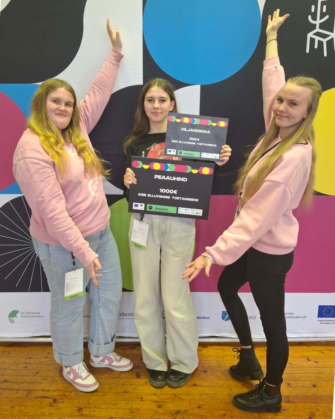 Võiduidee „Noorte õueala“ autorid, Abja gümnaasiumi õpilasesinduse liikmed Rahel, Mariete ja Isabela. Foto: Merle Lukka Eile 25. märtsil toimus Jõgevamaal Voore Põhikoolis „Noorte MõtteHäkk”, mis tõi kokku ettevõtlikud noored viiest Lõuna-Eesti maakonnast. Päeva keskmes oli noorte endi algatatud ideede arendamine, et muuta kohalikku elu paremaks ja lahendada kogukondlikke väljakutseid. Parim idee sai elluviimise toetuseks 1000 eurot.