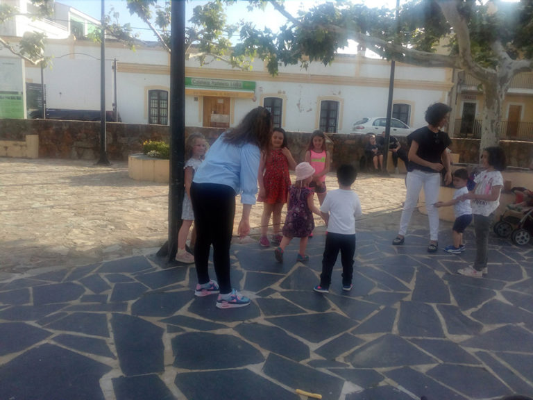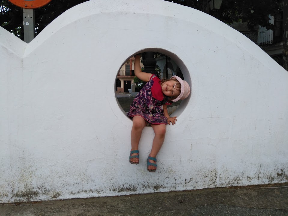 Nimelt läksime pärast siestat jalutama, käisime vanast tuttavast talupoest läbi ja lasime Roosil mänguväljakul nõrkemiseni küla poistega palli taguda ja tüdrukutega kummikeksu mängida (Roosi enne ei osanud, aga hispaania tüdrukud õpetasid talle selle selgeks). Oli huvitav näha, et kummikeksu ei mängi siin külas sugugi mitte ainult väikesed tüdrukud, vaid ka nende emad. Vahva oli vaadata, millise lustiga nad ka endale keksupaela ümber jalgade panid ning naeru kihistades hüppama hakkasid. Eestis ma sellist asja näinud ei olegi. Aga tõepoolest, miks ei võiks ka emad oma väikeste tütarde kõrval keksu mängida? Hispaania emad nautisid seda tegevust igatahes väga.