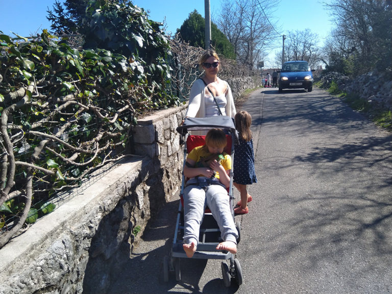 Meid lausa kiskus õue. Sõime hommikust, panime lapsed riidesse ja välja! Tegime pika jalutuskäigu ja läksime pärast seda jälle eile avastatud restorani sööma. Restorani nimi on Konoba Maretina ning kui keegi kunagi siiakanti satub, siis tasub ilmtingimata seda söögikohta külastada, sest toidud on ülimaitsvad, portsjonid suured ning hinnad imeodavad. Täna võtsime eelroogadeks kaheksajalasalati ja kalasupi ning põhiroogadeks kaks risottot – ühe krevettide ja teise mereandidega. Nii kui liuad lauda toodi, saime aru, et oleksime pidanud ikka ühe kahe peale võtma, sest üks portsjon oli lihtsalt niiii suur. Ma ei ole kusagil Eesti restoranides nii suuri portsjone näinud. Ja hind ainult kaheksa eurot. Kuskil poole odavam on restoranitoit siin kui Eestis. Kui Eestis maksab taldrikutäis suppi 4 eurot, siis siin kaks, põhiroogade hinnad on 5-10 eurot, aga selle raha eest saad ka juba väga suure liua. Inno palus edasi öelda, et ta võtab kõik sõnad Horvaatia köögi kohta tagasi, et siin ikka saab väga hästi vahemere stiilis süüa 😀