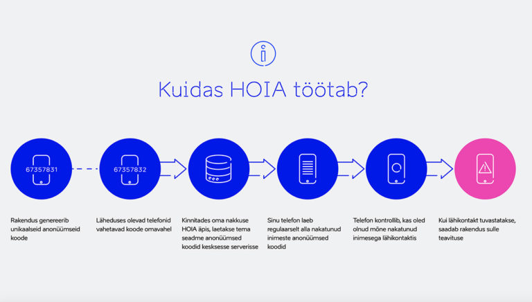 „Näiteks selleks, et HOIA rakenduse loomine oleks üldse võimalik, lisasid Google ja Apple oma süsteemidesse täiesti uued funktsioonid ning mobiilirakendusse loodi esmakordselt juhuslike koodide süsteem, mis pole kuidagi seotud kasutaja isikuandmete ega asukohaga,“ selgitas Tera, et rakenduse arendamisse panustasid tõepoolest Eesti kõige helgemad pead ja tehnoloogiavaldkonna eksperdid ning samuti tehti rahvusvahelist koostööd.