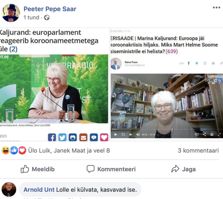 Avaldatud: 14 aprill, 2020Eesti saadik Brüsselis Marina Kaljurand kord kritiseeris Euroopa Liitu, et reageeriti üle seoses koroonameetmetega, siis aga märkis, et Euroopa jäi koroonakriisis hiljaks.
