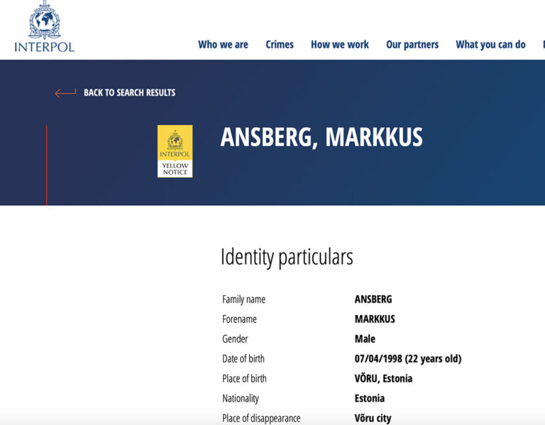 Markkuse tagaotsimise teade on jätkuvalt üleval Interpoli veebis.