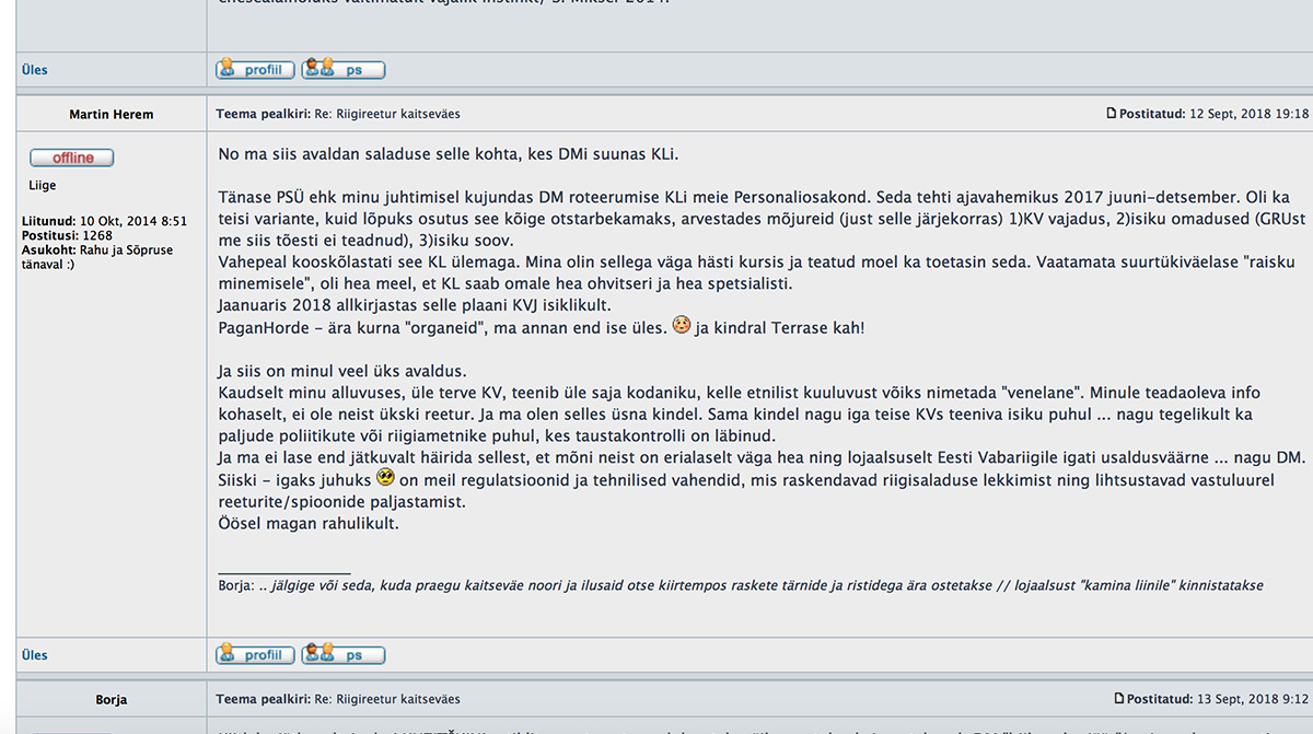 „No ma siis avaldan saladuse selle kohta, kes DMi suunas KLi,” kirjutab Herem portaalis militaar.net. DM tähistab Deniss Metsavast ja KL tähendab Kaitseliitu.