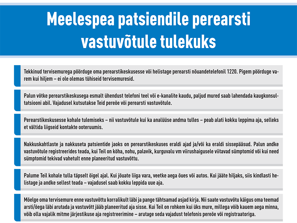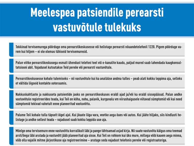 Eesti Perearstide Seltsi koostas meelespea patsientidele, kes tulevad perearsti vastuvõtule. Siin see on:
