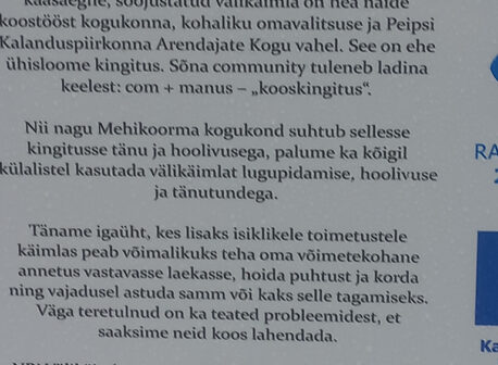 Mehikoorma kogukonna eestvedamisel rajatud uus ja kaasaegne, soojustatud välikäimla on hea näide koostööst kogukonna, kohaliku omavalitsuse ja Peipsi Kalanduspiirkonna Arendajate Kogu vahel. See on ehe ühisloome kingitus. Sõna community tuleneb ladina keelest: com + manus – „kooskingitus”.