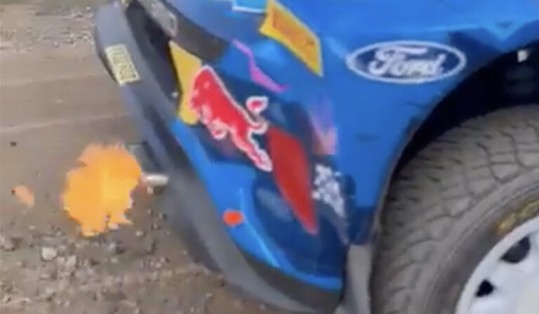 Tänak jäi testikatsel hätta, kui tema Ford tegi etapi finišis tavatut häält. Leegid paiskusid tühikäigul töötades auto sumbutist välja.