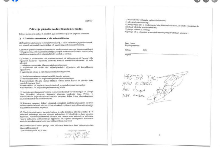 Avaldatud: 1 juuli, 2025Sotsiaalmeedias küsitakse, mis seis jäi Riigikogu istungjärgu lõpuks numbrituvastuskaamerate süsteemiga, mis teatavasti on PPA poolt avalikkuse eest varjatult üles ehitatud ning mille kaudu on tehtud Eesti teedel liikuvatest autodest keskmiselt ligi 20 miljonit pilti kuus, ilma et selleks oleks olnud kohane õiguslik alus?