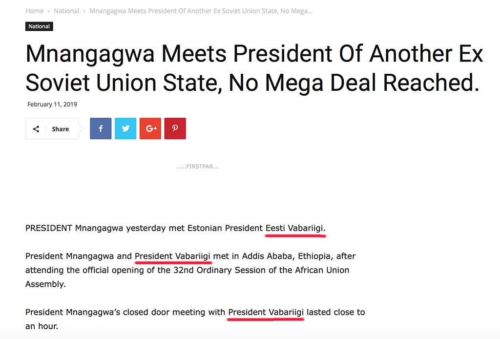 Midagi erilist küll väljaande info kohaselt kohtumisel ei saavutatud, aga kommentaaridest tuleb välja, et president Vabariigi ja president Mnangagwa vahetasid viljakalt mõtteid riigi valitsemise teemal.