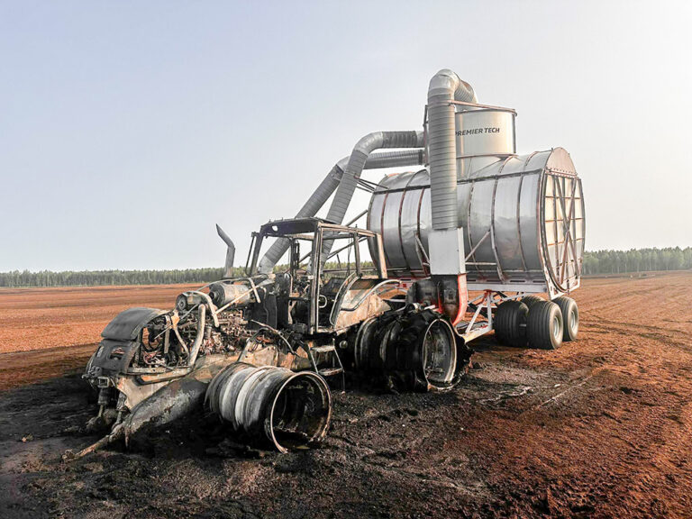 Traktor põles koos selle küljes oleva turba kogumisseadmega, ohus olid ka ümbritsev rabapinnas ning turbaaunad. Päästjad võtsid kustutustöödeks vett turbavälja otsas olevast tiigist.