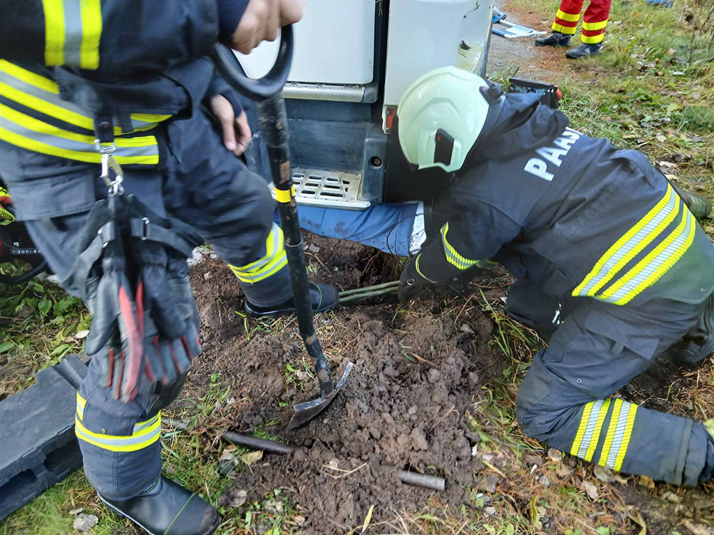 Tõenäoliselt libises veoki alt tungraud ära, mees oli küljega sõiduki nurga all.