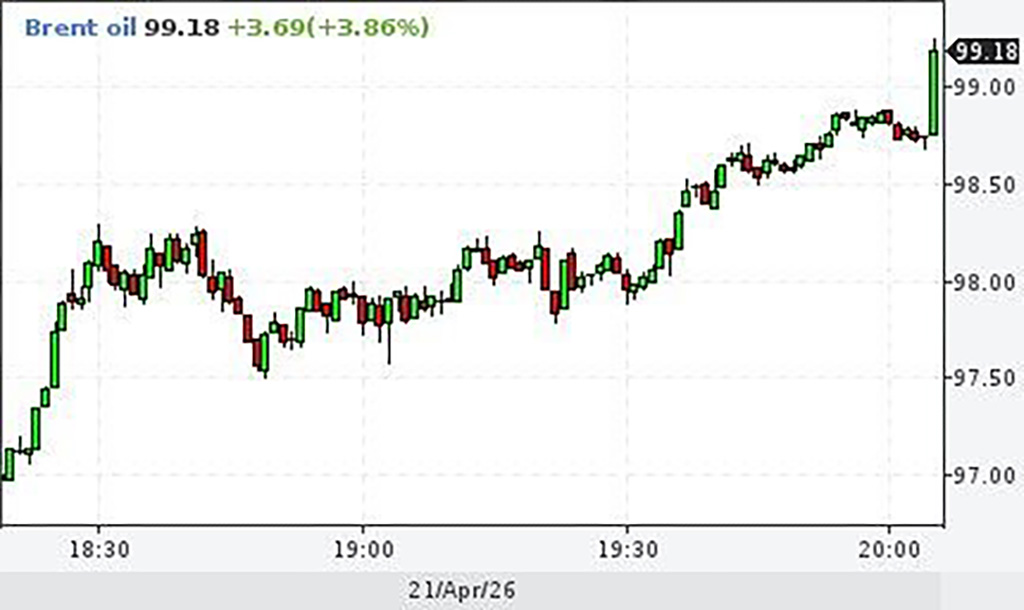 Avaldatud: 21 aprill, 2026Toornafta Brenti hind kerkis taas 99 dollari peale barrel, kuna USA-Iraani läbirääkimised luhtusid.
