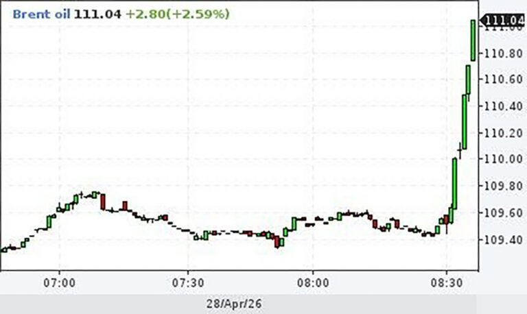 Avaldatud: 28 aprill, 2026Enimkaubeldud Brenti toornafta hind kerkis täna teisipäeval, 28. aprillil 111 dollari peale barrel. Hind on viimastel päevadel taas kiiresti kerkinud.
