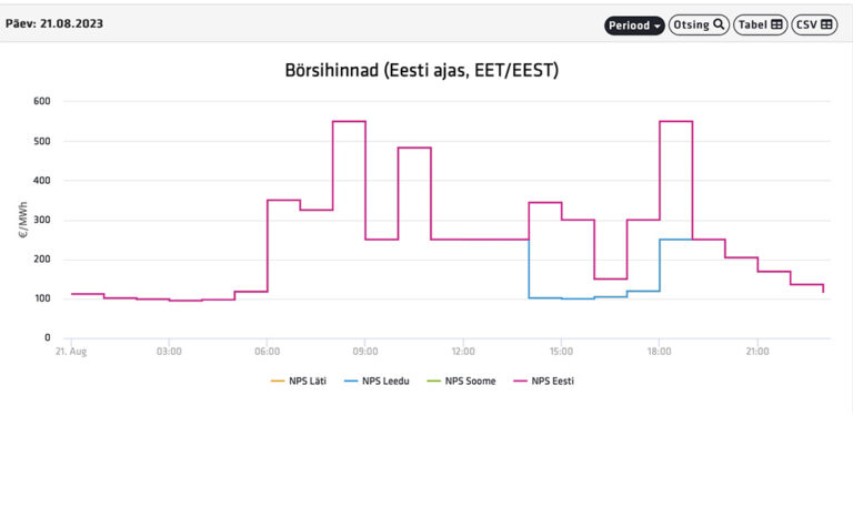 Avaldatud: 20 august, 2023Nordpooli elektribörsi andmetel kerkib elektri hind homme esmaspäeval, 21. augustil Eestis kuni 550 euroni MWh eest.