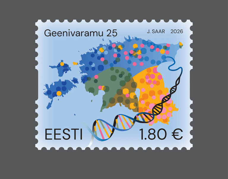 Avaldatud: 13 märts, 2026Täna möödub 25 aastat Vabariigi Valitsuse 13. märtsi 2001. aasta korraldusest, millega asutati Eesti geenivaramu. Juubeli tähistamiseks antakse välja 1,80-eurose nimiväärtusega postmark, mida saab osta kõigist postkontoritest üle Eesti ja Omniva e-poest. Esimese päeva tempel on kasutusel Tartus Kvartali keskuse postkontoris.