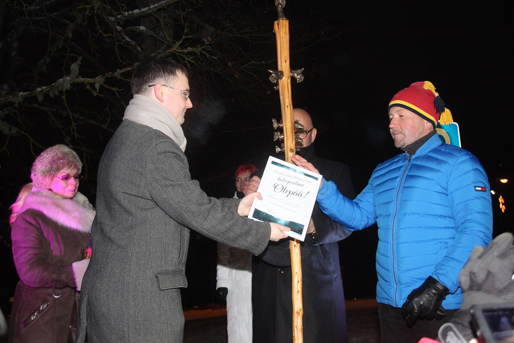 Kui lustlik paraad läbi sai, suunduti üheskoos Otepää Keskväljakule, et talve vastuvõtmist tähistada. Otepää Winterplace’i vastvalminud liuväljaku avasid Tartu Uisukooli õpilased ning talvises õhus lõid karge meeleolu Taavi Petersoni laulud. Külma ilma tegi soojemaks kuum tee ja kringel, õhtut juhtis Vaido Pannel. Otepää valla juhid andsid üle Otepää valla medali rännumees Heini Räämetile.