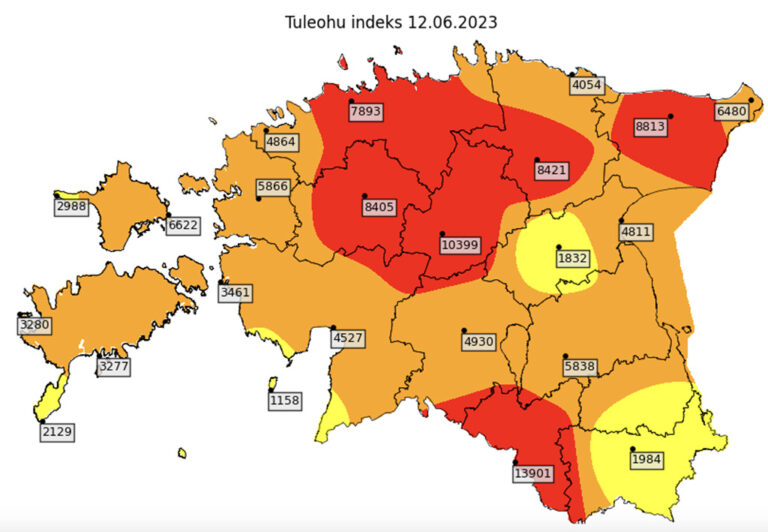 Avaldatud: 12 juuni, 2023Ilmateenistuse tuleohukaardi järgi valitseb suures osas Eestist äärmiselt suur tuleoht (vaata TULEOHUKAART), hoiatab Päästeamet.