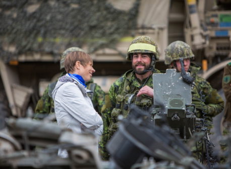 Avaldatud: 7 mai, 2019Täna külastas vabariigi president Kersti Kaljulaid õppusel Kevadtorm osalevaid üksusi, sai ülevaate õppuse senisest käigust ning suhtles Ida-Virumaal õppelahingutel osalevate kaitseväelastega.