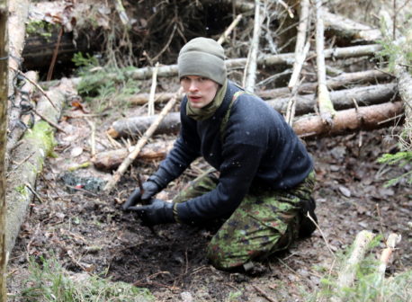 Alati ei pruugi talvel olla võimalik magada telgis ega isegi telkmantli all. Selleks puhuks õppisid sõdurid, kuidas rajada varjualust, mis peaks vastu tuulisele ja sademerohkele ilmale. „Lisaks praktilisele ehitusoskusele treenib selline harjutus ka meeskonnatööd: iga liige peab panustama nii ehituse ajal kui ka hiljem lõkkevalves. Vastasel juhul on tulemuseks kehv varjualune, märjad riided ja külmunud sõdurid,“ ütles nooremleitnant Utsal.