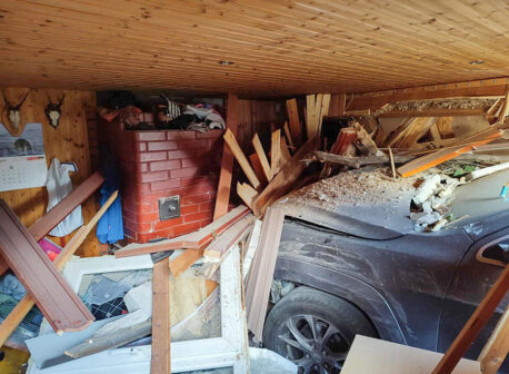 Sõiduki esiots oli nii palju maja sees, et auto süttimisohu likvideerimine polnud võimalik. Päästjad kontrollisid ja hoidsid olukorral silma peal.