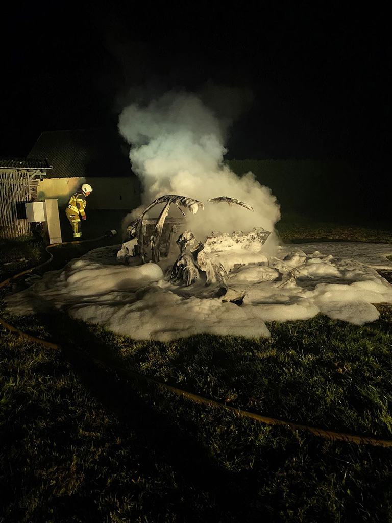 Masin ühendati elektrivõrgust lahti ja kustutati vahurünnakuga. Auto hävis tules peaaegu täielikult, kõrvalolevad hooned kahjustada ei saanud.