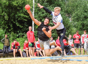 Saalikäsipallis võistkonnakaaslased, rannas vastased – Eesti koondislased Markus Viitkar (viskel) ja Robin Oberg avaetapil Põlvas. Foto: Helin Potter