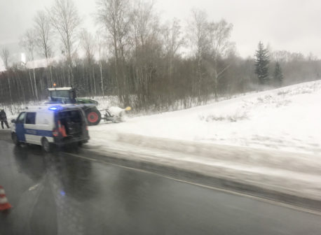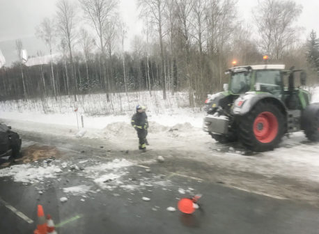 Sõiduauto oli lumelükkamise traktorile sisse sõitnud.