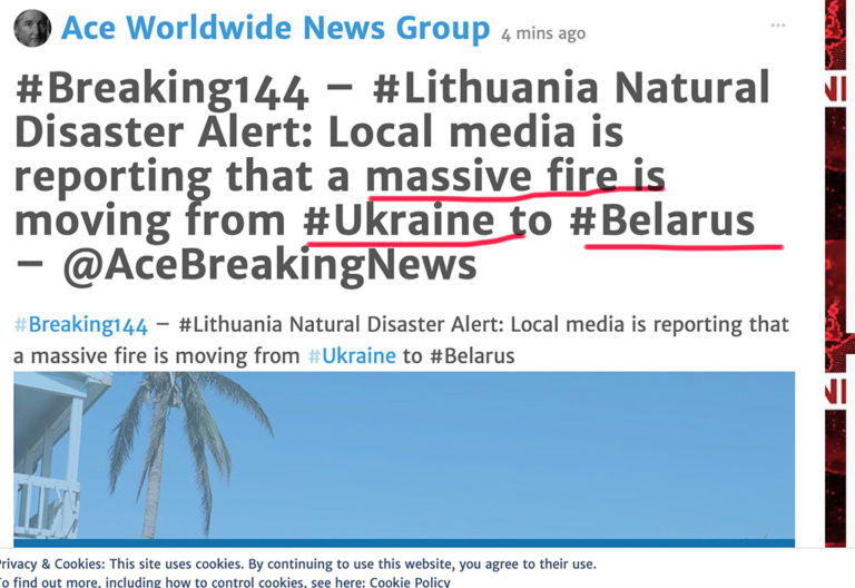 #Lithuania Natural Disaster Alert: Local media is reporting that a massive fire is moving from #Ukraine to #Belarus approaching the border to Lithuania. All persons in Lithuania are advised to keep doors and windows closed and to stay inside. Monitor local media for updates. pic.twitter.com/WARnzwXW7H