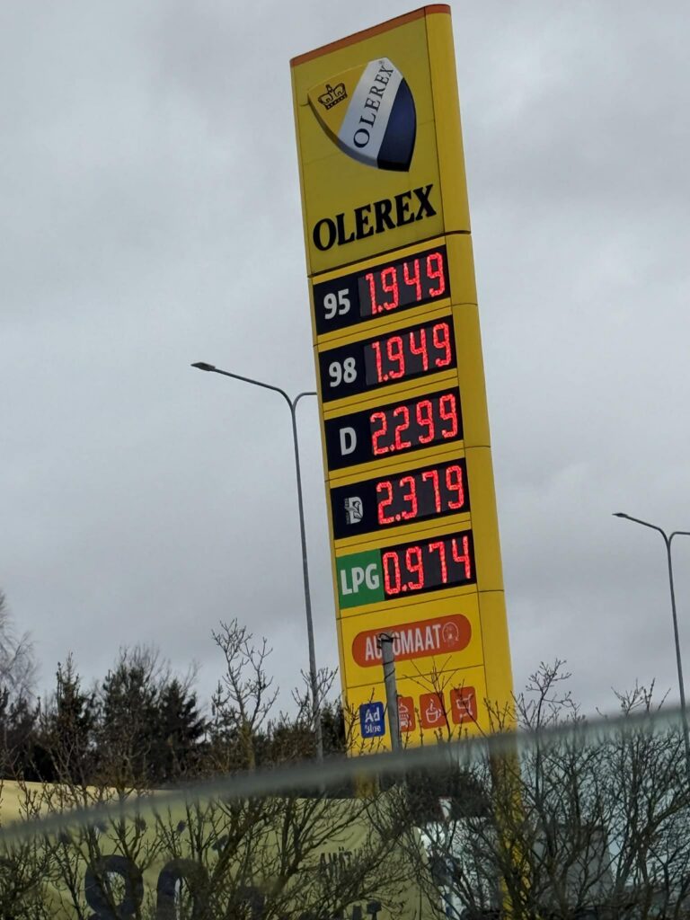 Bensiin 95 on 1,9 eurot liiter, diisel 2,3 eurot liiter.