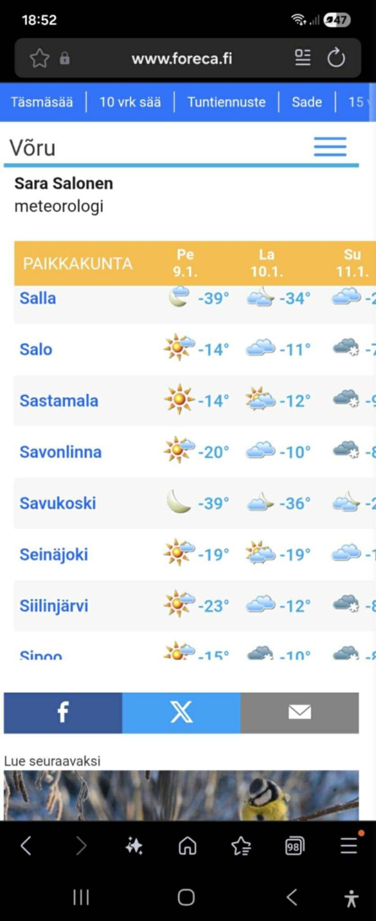 Avaldatud: 9 jaanuar, 2026Soomes on praegu ilm päris külm. Lapimaal on ligi 40 kraadi külma.