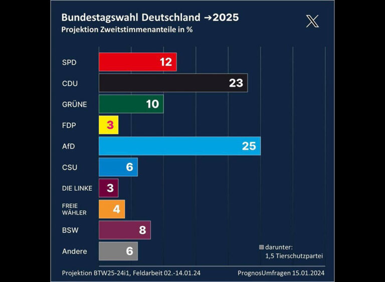 Avaldatud: 16 jaanuar, 2024Värske arvamusküsitluse andmetel on Saksamaal toimunud suur pööre paremale. Küsitluse andmetel annaks rahvas oma hääle parempoolsetele erakondadede.