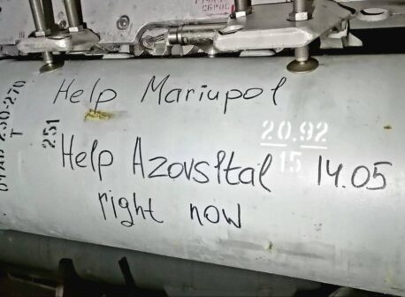 Pommid olid järgmiste kirjadega: „Kalusha, nagu te palusite! Azovstali 14.05.2022”, „Aidake Mariupoli. Aidake Azovstali nüüd kohe. 14.05.2022” ja „Eurovisioon 2022. Kuulsin kutset. K****da Azovit. 14.05”.
