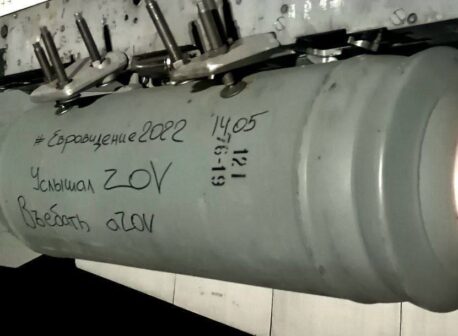 Selliste pommidega pommitati täna Azovstali tehast. Need olid pühendatud Ukraina eilsele võidule Eurovisioonil.