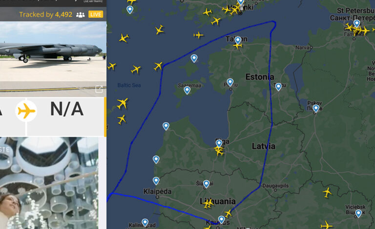Avaldatud: 11 märts, 2023USA hiidpommitaja B-52H Stratofortress, mida on seni kasutatud peamiselt suuremates sõdades lendas täna laupäeval, 11. märtsil Soome lahe kohal Peterburi poole, aga pöördus siis järsku Eesti poole ja lendas üle Eesti tagasi suunaga Taani poole.