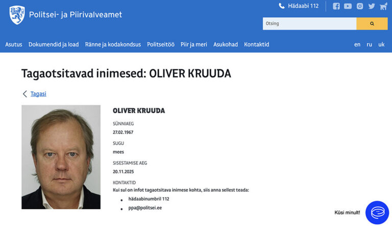 Avaldatud: 28 november, 2025Võlausaldajate, kohtutäiturite ja pankrotihaldurite eest maapakku läinud ärimees Oliver Kruuda kuulutati tagaotsitavaks.
