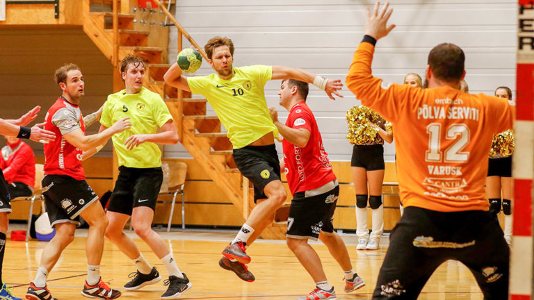 HC Tallinna mängujuht Uku-Tanel Laast viskas küll Põlva Serviti võrku kaheksa palli, aga tiitlikaitsja sai 27:21 võidu. Foto: Helin Potter Meeste meistriliiga vaheturniiride eelviimane voor sai alguse teisipäeval, kui Põlva Serviti alistas kodusaalis tugeva teise poolaja toel valitseva Eesti karikavõitja HC Tallinna 27:21 (9:9). Tiitlikaitsja jätkab liidrina ning viimases voorus piisab neile HC Kehra/Horizon Pulp&Paperi vastu viigist, et vaheturniiri esikoht kindlustada.
