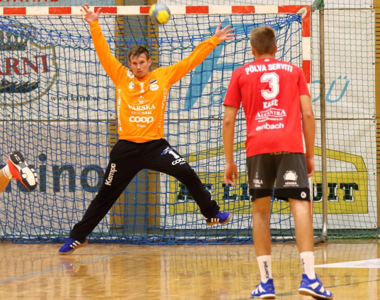Väravavaht Jürgen Lepasson oli üks Põlva Serviti kangelasi viigimängus Balti liiga tšempioni Riihimäe Cocksi vastu. Foto: Helin Potter/arhiiv Käsipalli Balti liiga vahelejäänud kohtumises mängis Põlva Serviti laupäeval kodusaalis 27:27 (17:13) viiki viimase nelja aasta Balti liiga tšempioni ja Euroopa Meistrite liiga klubi Riihimäe Cocksiga. Soome meister jätkab üheksa punktiga A-alagrupi liidrina, Servitil on kolme viigiga kuuest mängust tabelis kolm silma.