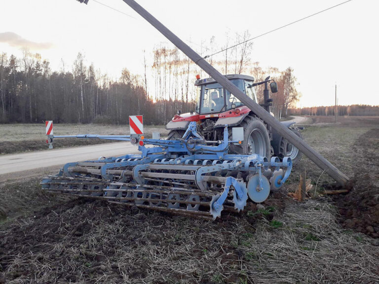 Teise traktori abil aidati traktor posti alt välja, liini ja posti remontimiseks tulid kohale elektrikud.
