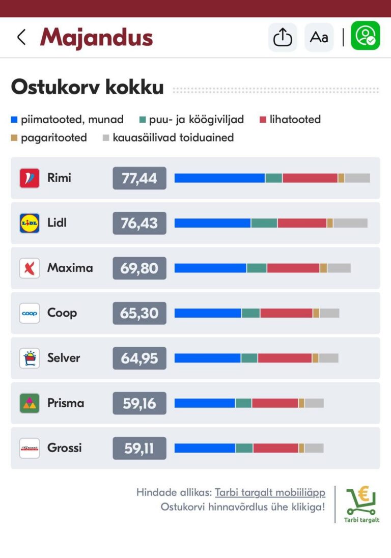Avaldatud: 12 september, 2025Sotsiaalmeedias jagatakse Postimehe hinnavõrdlust, kus võrreldavad toidukaubad on Grossi poes 30% odavamad kui Rimis.