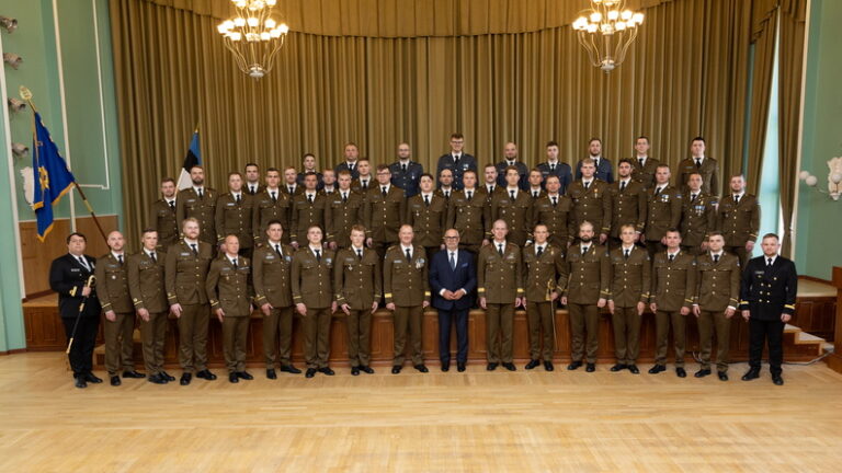 President Alar Karis andis Kaitseväe Akadeemia lõpetajaile üle auastmetunnused